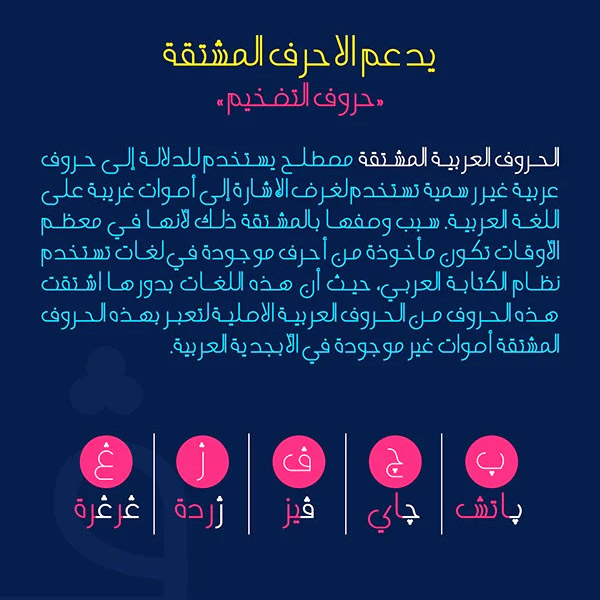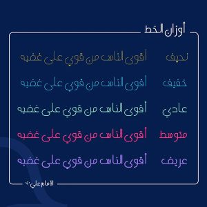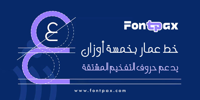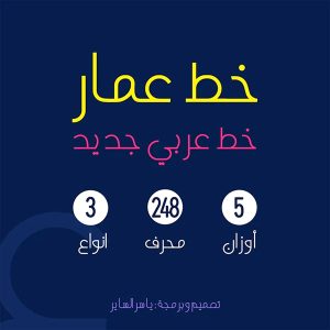 خط عمار بخمسة أوزان يدعم حروف التفخيم المشتقة .. خط عربي أنيق يحتوي على مميزات عديدة وأوازن متعددة، ويمكن استخدامه في العناوين والمطبوعات وأيضا التصاميم المختلفة، كما يدعم حروف التفخيم مثل الباء والفاء والجيم والتي تأتي بثلاثة نقاط كما في الصورة بالأسفل، متاح الآن للتحميل المجاني.